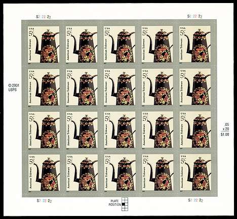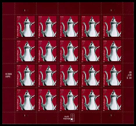 Scott #3756 NH Sheet VF: June 25, 2004 5c American Design: Toleware Coffeepot.