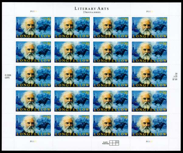 Scott #4124 NH Sheet VF: March 15, 2007 39c Literary Arts: Henry Wadsworth Longfellow, Poet.