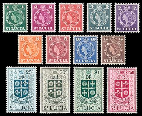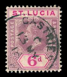 NOTE: POSTAL USE OF ST. LUCIA REVENUES: St. Lucia revenue stamps were mostly postage stamps that were overprinted "REVENUE", but such overprinted postage stamps were still valid for postage. When used for postage, such stamps will bear a typical postal cancellation. When used for revenue purposes, such stamps will either bear some other type of handstamped cancellation or more typically a manuscript cancellation.